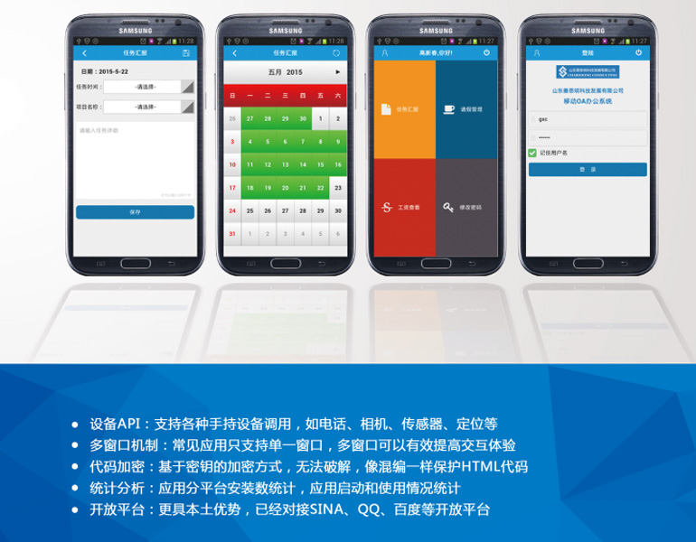 设备API:支持各种手持设备调用,如电话、相机、传感器、定位等